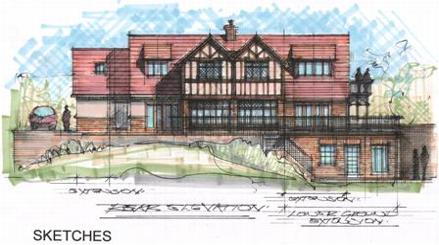 EXTENSION AND REFURBISHMENT OF PRIVATE DWELLING - OXTED, SURREY - Sketch proposals and final drawings for the alterations and refurbishment of this chalet bungalow. The proposal added to the accommodation at three floor levels including a basement games room, a master suite with dressing room and shower room and guest room with en-suite shower room. The ground floor enjoys a breakfast room and formal dining room with a choice of formal and informal sitting rooms. The rear terrace area was enlarged and arranged over two levels. A new double garage with storeroom is proposed within the grounds. The application was APPROVED by TANDRIDGE DISTRICT COUNCIL with conditions.
